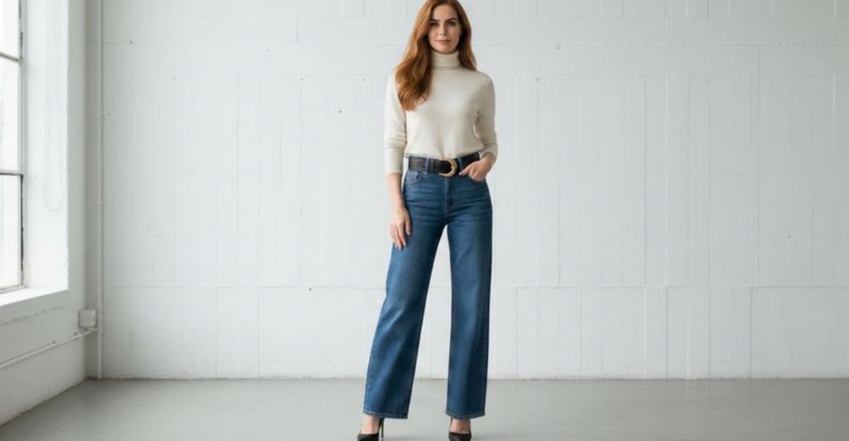 Wide-leg jeans are having a major moment, and they look incredibly chic with turtlenecks when styled correctly.