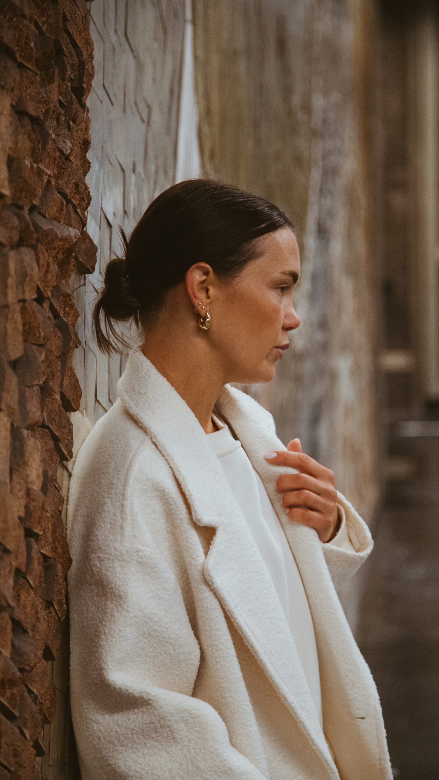 When choosing a white coat, practicality counts—opt for wool blends with water-resistant finishes or technical fabrics for puffers to keep it looking fresh. Subtle hardware in gold or silver adds just the right touch of sophistication against the crisp backdrop.