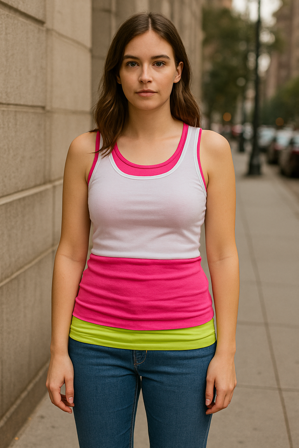 Two, sometimes three tanks of different colors stacked on top of each other for absolutely no logical reason. Nobody could explain why this trend existed, but we all participated like it was unspoken fashion law.