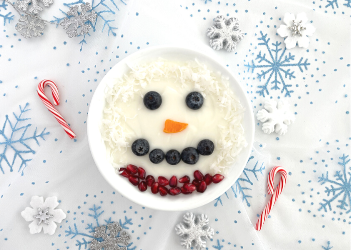 Show your family how to layer ingredients in clear glasses or jars to create snowman designs.