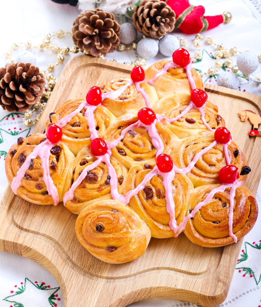 Picture this: golden cinnamon rolls arranged in the shape of a Christmas tree that everyone can pull apart and enjoy.