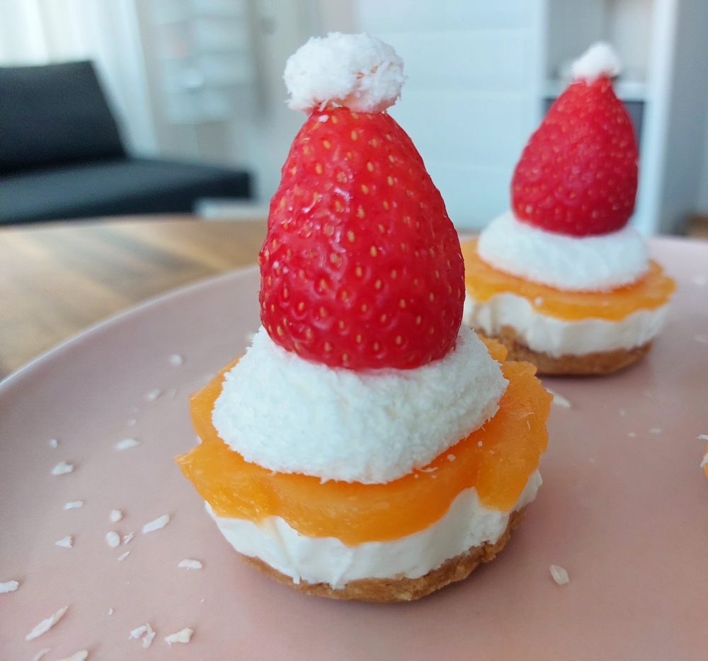 Use store-bought shortcakes or biscuits as the base for these adorable Santa hat creations.