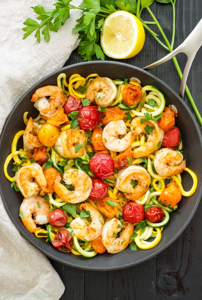 2. Zucchini Noodles with Garlic Shrimp and Cherry Tomatoes