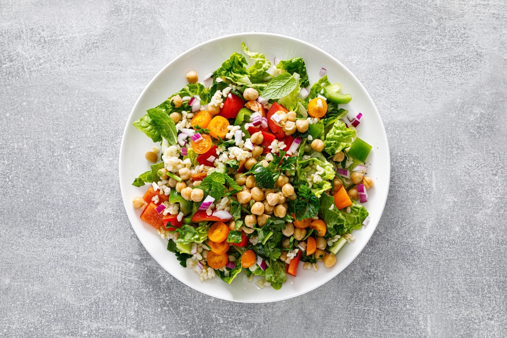 Packed with protein and fiber, this bowl brings the vibrant flavors of the Mediterranean straight to your table. Crispy roasted chickpeas serve as the star, paired with fresh vegetables that add crunch and color to every bite.