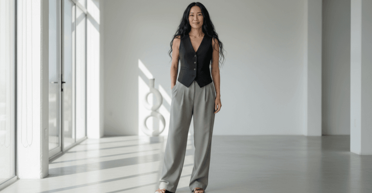 5. Tailored Vest + Wide-Leg Trousers + Minimal Sandals