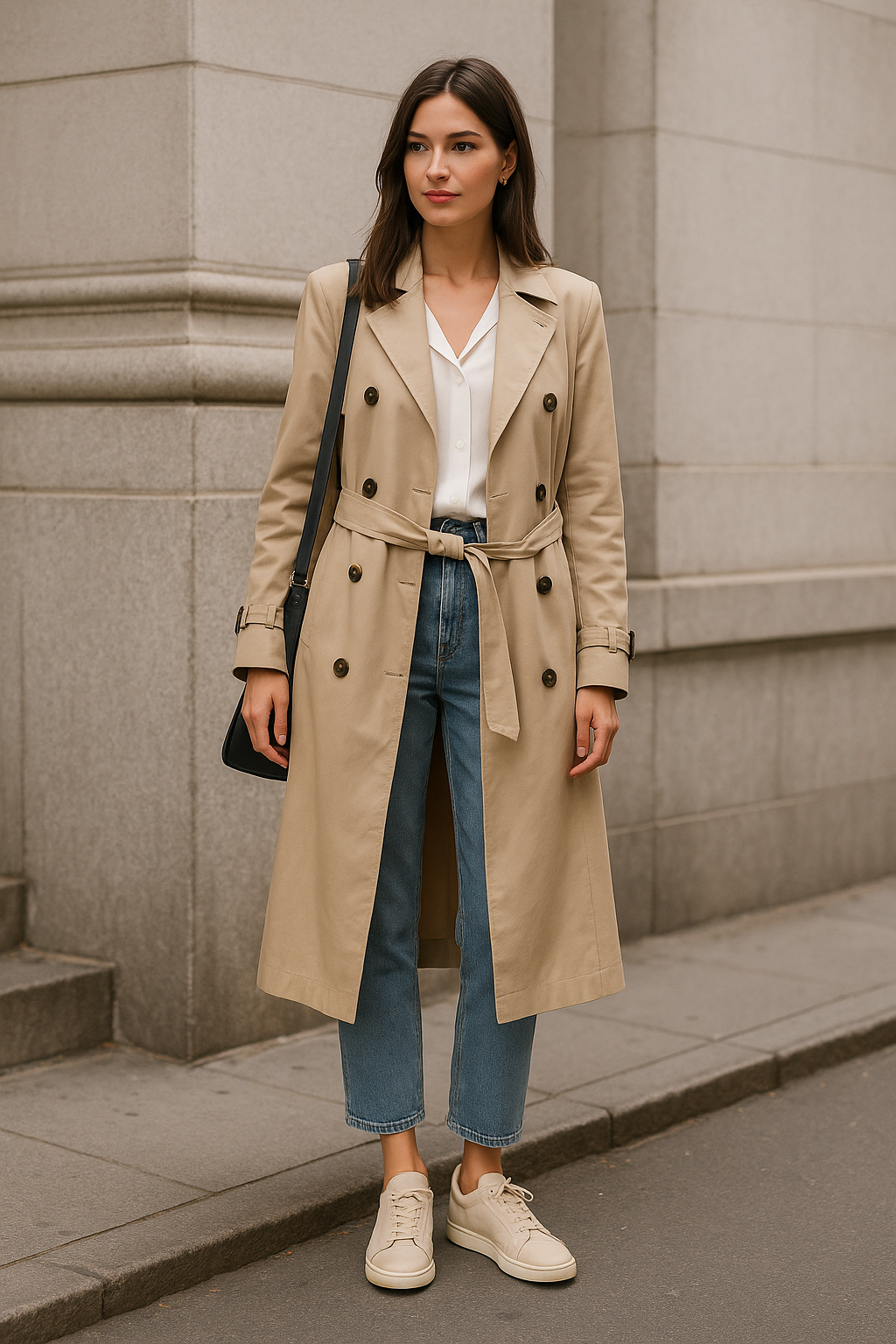Trench coats have this magical ability to make everything underneath them look more expensive and intentional. Pair yours with cropped denim and a flowy blouse for a classic combination that feels fresh and modern. The cropped hem shows off your sneakers, making them an integral part of the outfit rather than an afterthought.