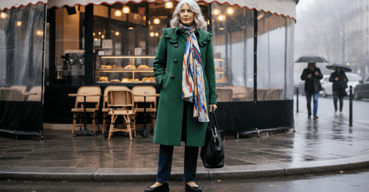 This combination works because it balances elegance with everyday comfort, making you look intentional rather than caught off guard by the weather.