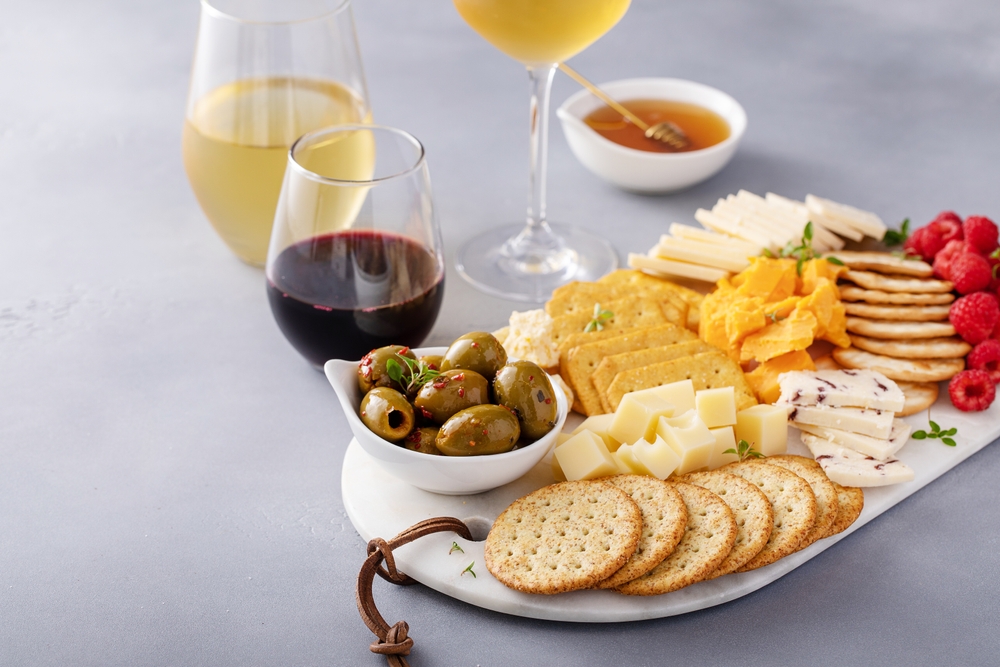 Add crackers, some fresh or dried fruit, and a handful of nuts to fill out the board. Small touches like honey or jam give guests flavor-pairing options.
