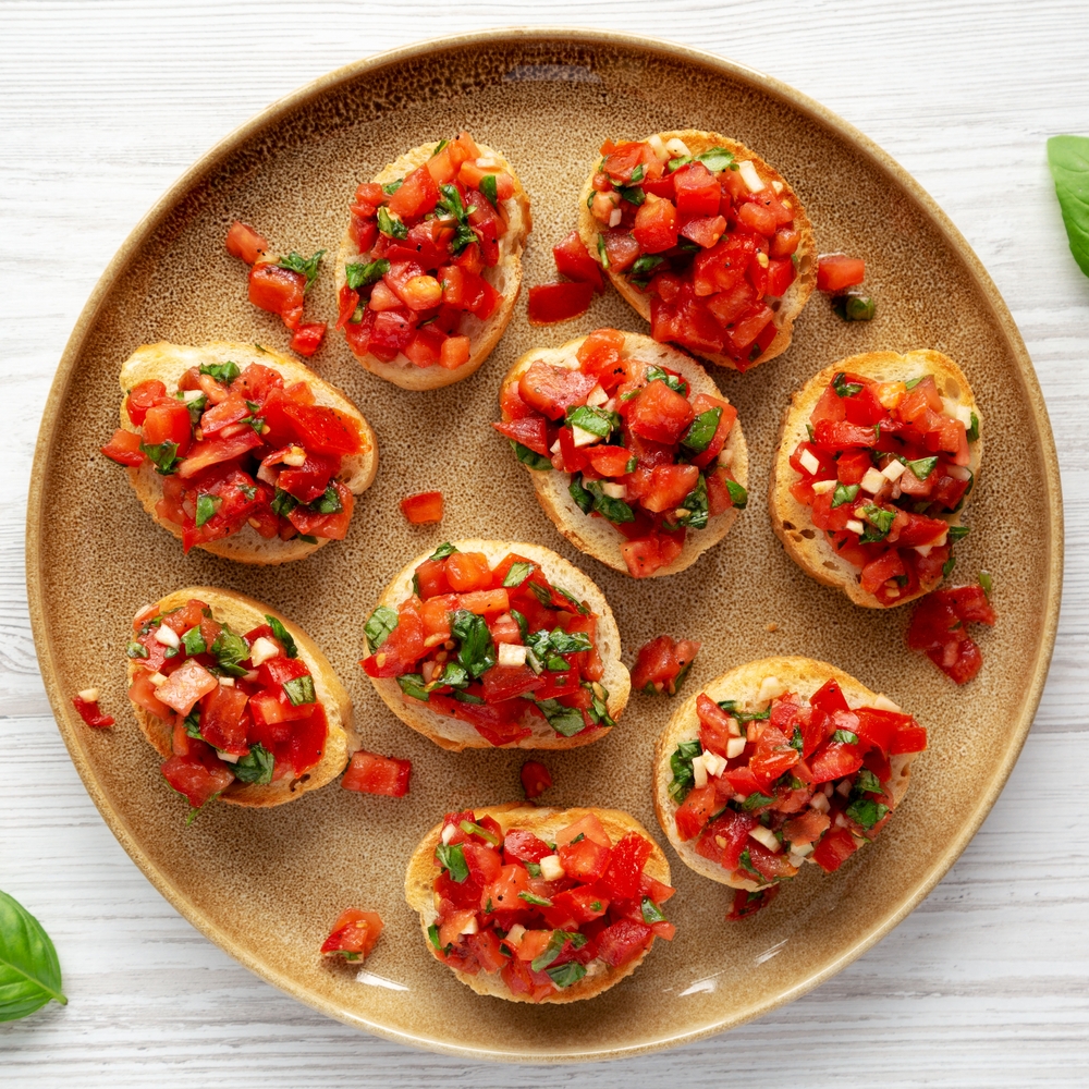 Crispy toasted bread becomes a vehicle for fresh flavors when topped with a quick tomato mixture. Dice ripe tomatoes and combine them with minced garlic, chopped basil, olive oil, and a pinch of salt.