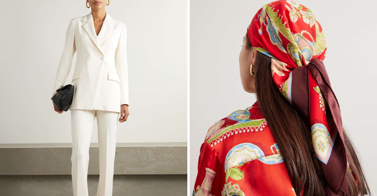There is something quietly luxurious about a silk or satin scarf — it costs relatively little but adds an enormous amount of personality to any look.