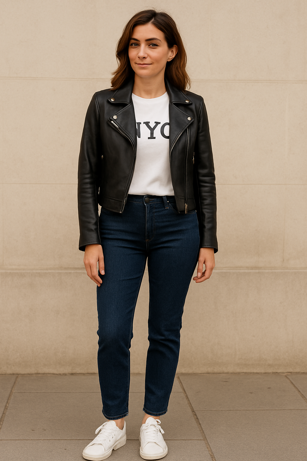 Sometimes you want an outfit that feels effortlessly cool without trying too hard. A subtle graphic tee paired with cigarette jeans strikes that perfect balance between casual and stylish. Adding a cropped leather or denim jacket gives the look an edge.