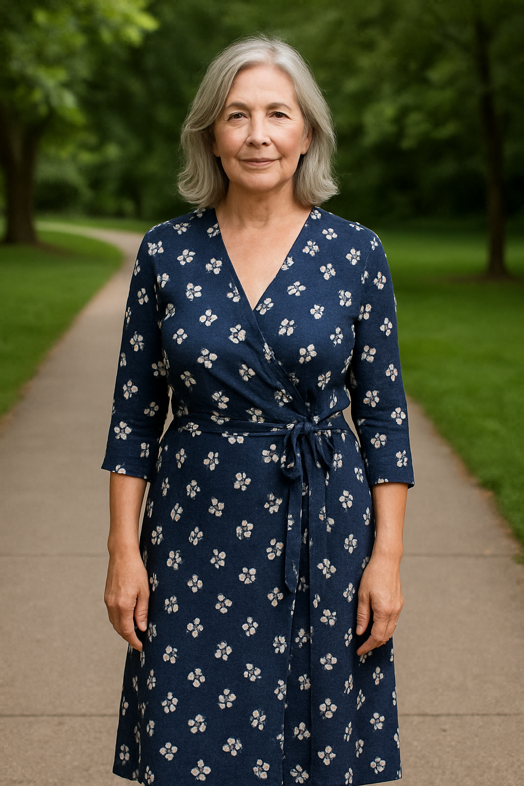 The wrap dress has become her reliable friend for countless occasions. It cinches at just the right spot, flows over everything else, and makes getting dressed feel effortless. One piece, no complicated styling required, and she’s ready for anything from brunch to book club.