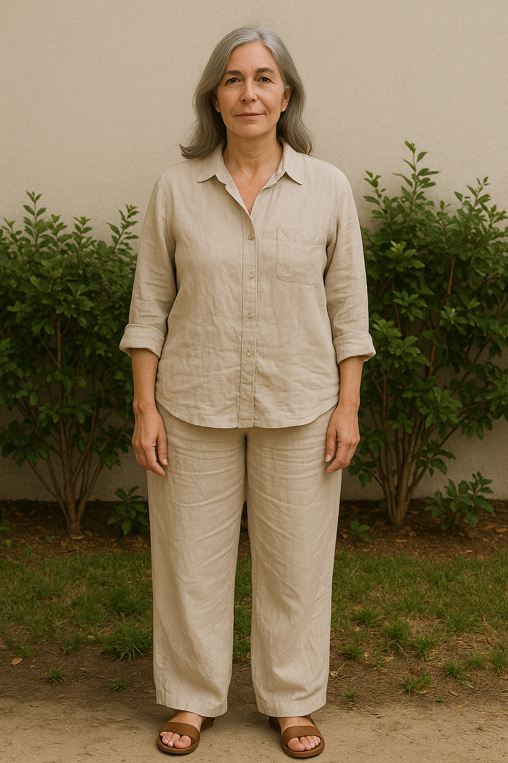 While younger women might stress about keeping linen crisp, she understands that the rumpled texture is part of its charm. It signals a woman who values comfort and authenticity over rigid standards.