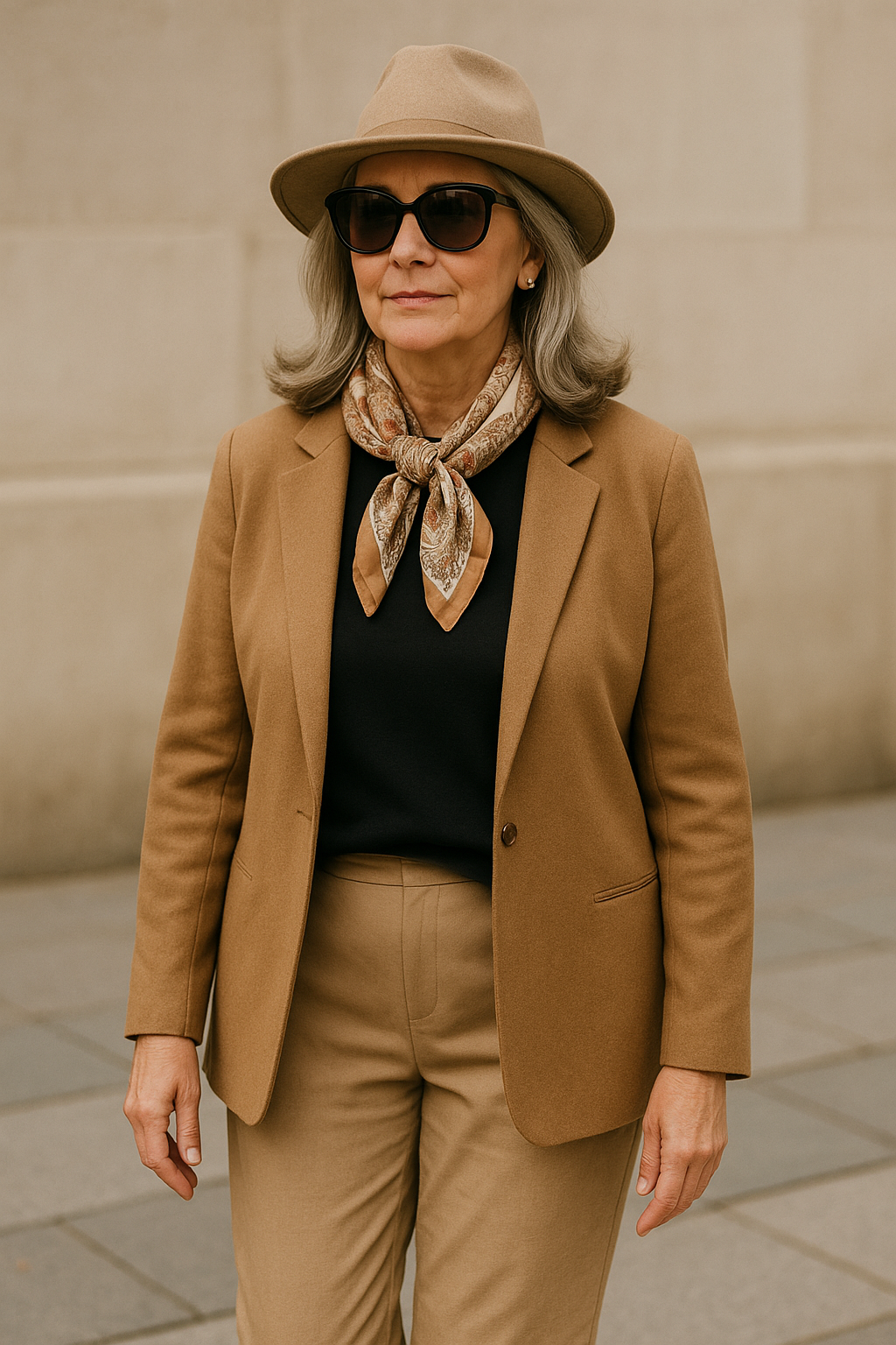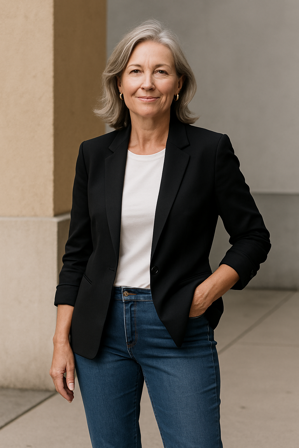 A well-cut blazer transforms any outfit from casual to confident in seconds. She throws one over a t-shirt and jeans for coffee or wears it to meetings. The blazer is her secret weapon for instant polish without the fuss.