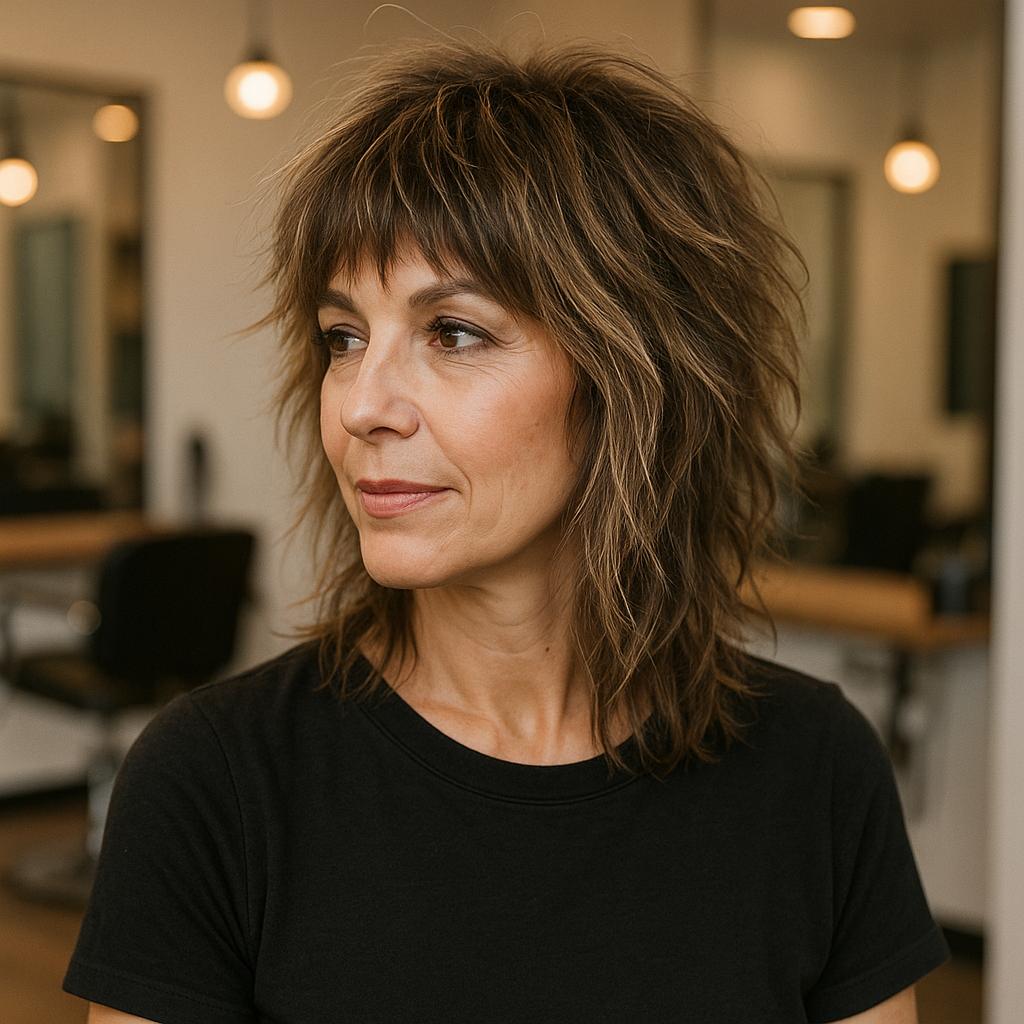 Who says women over 50 can’t rock an edgy, modern look? The textured shag brings rock-and-roll vibes with a sophisticated twist that’s absolutely ageless.