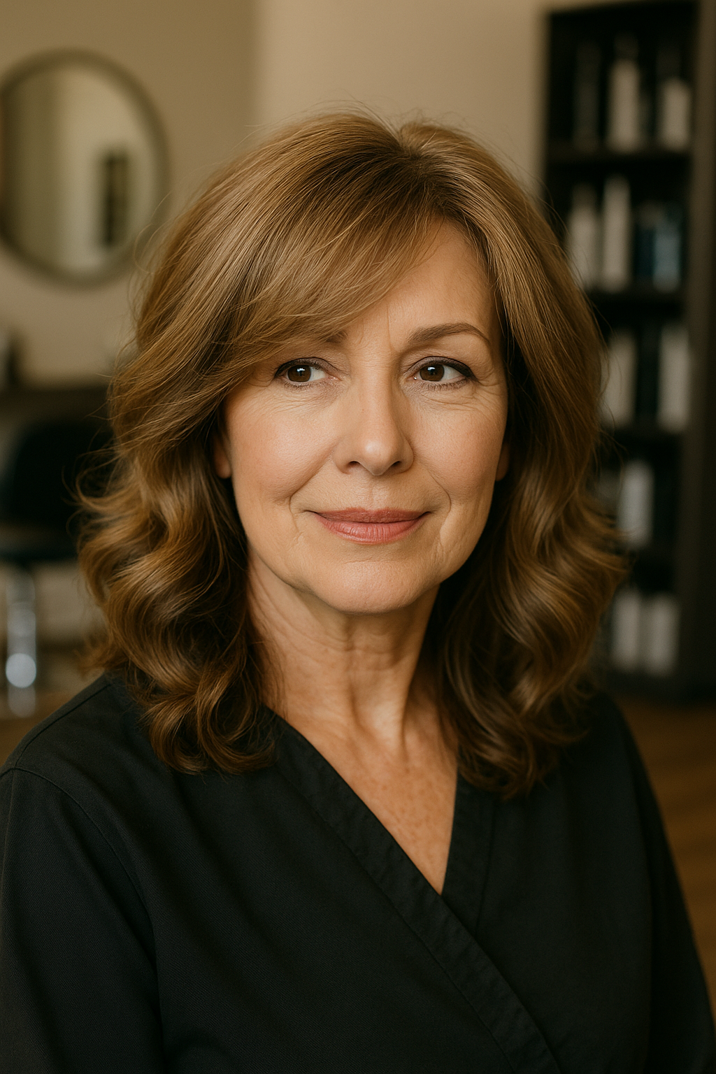 Layers work magic on aging hair by adding volume, movement, and a youthful bounce that flat, one-length cuts simply can’t achieve. This style is especially wonderful for women whose hair has become thinner over the years.