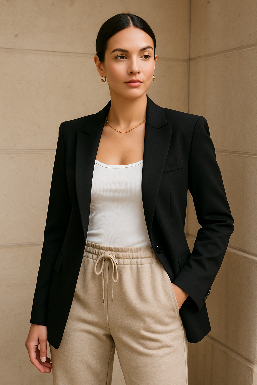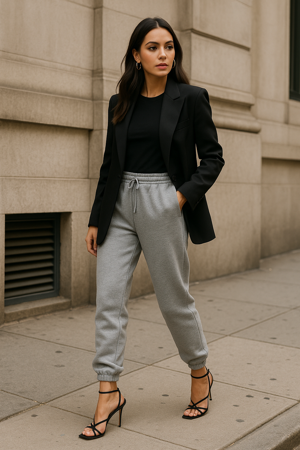 Blazers bring structure and definition to any outfit, especially when paired with something as casual as sweatpants. The clean lines and professional vibe of a blazer make the entire look feel intentional rather than thrown together.