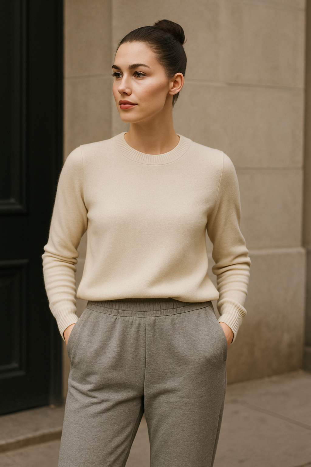 Opt for sweatpants in high-quality materials—like thick cotton, cashmere blends, or structured knits. Better fabric equals a more refined silhouette.
