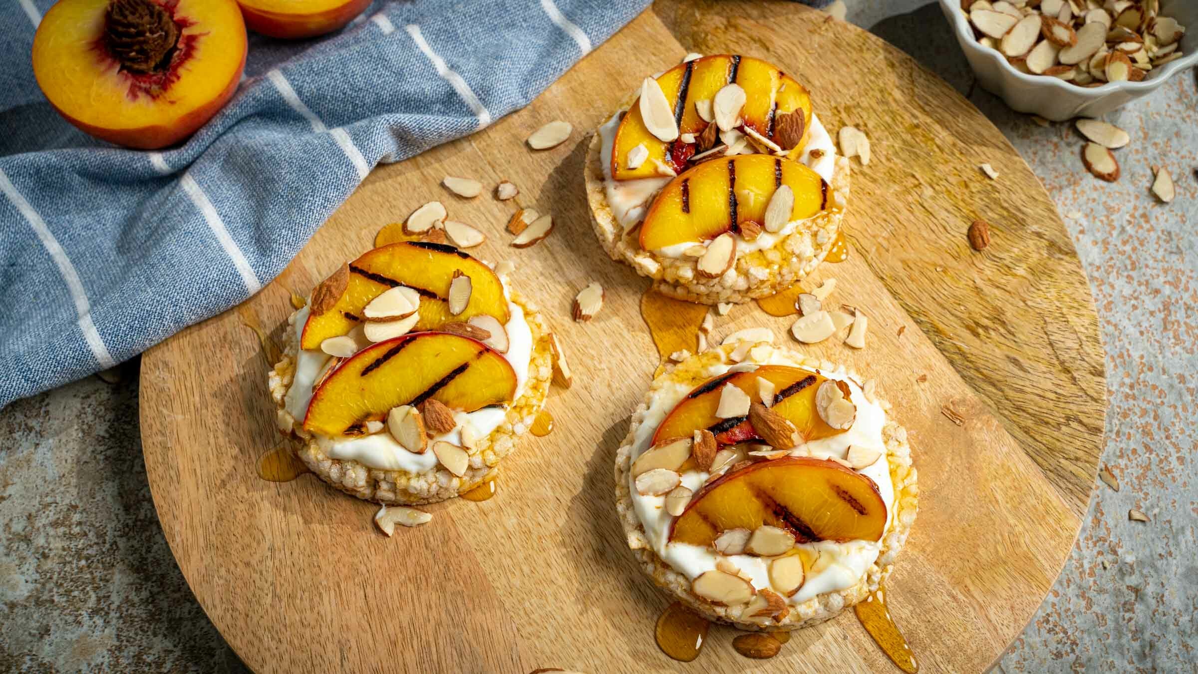 9. Rice Cakes with Ricotta and Sliced Peaches