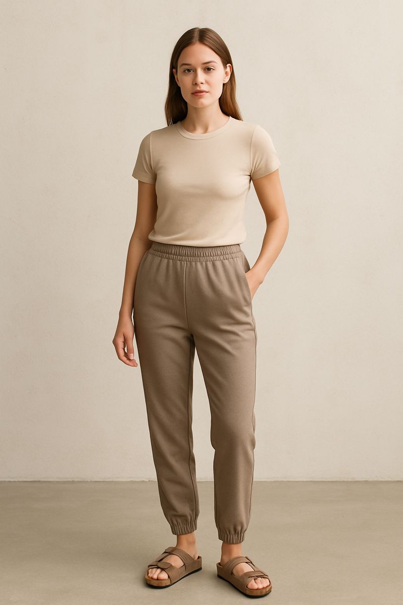 Tailored joggers combined with structured tees and Birkenstock slides show how athleisure matures in 2026.