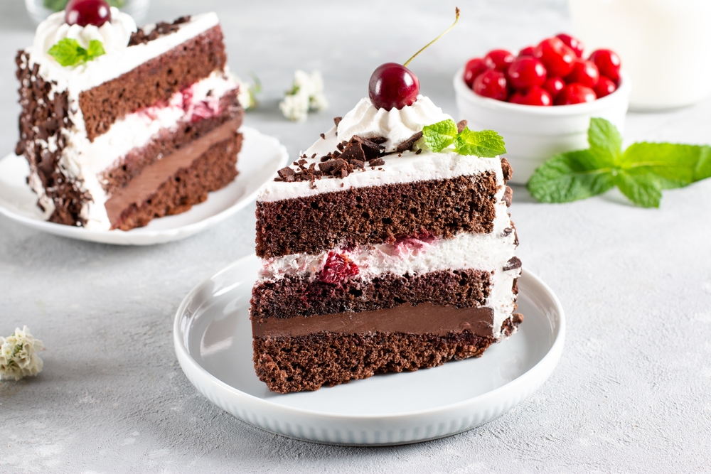 Chocolate shavings cascade down the sides like a delicious waterfall, while whole cherries crown the top. The combination of textures keeps each bite interesting, from fluffy cream to dense cake to juicy fruit.