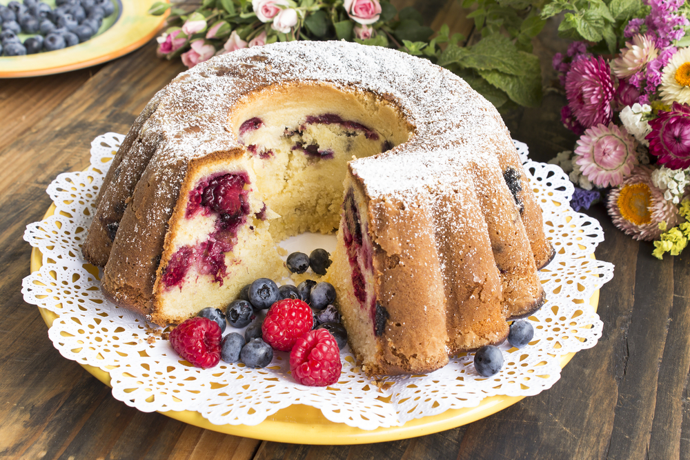 The bundt pan’s decorative ridges give this cake an impressive appearance with minimal effort required. A simple lemon glaze drizzled over the top adds just enough sweetness while letting the fruit flavors shine through.