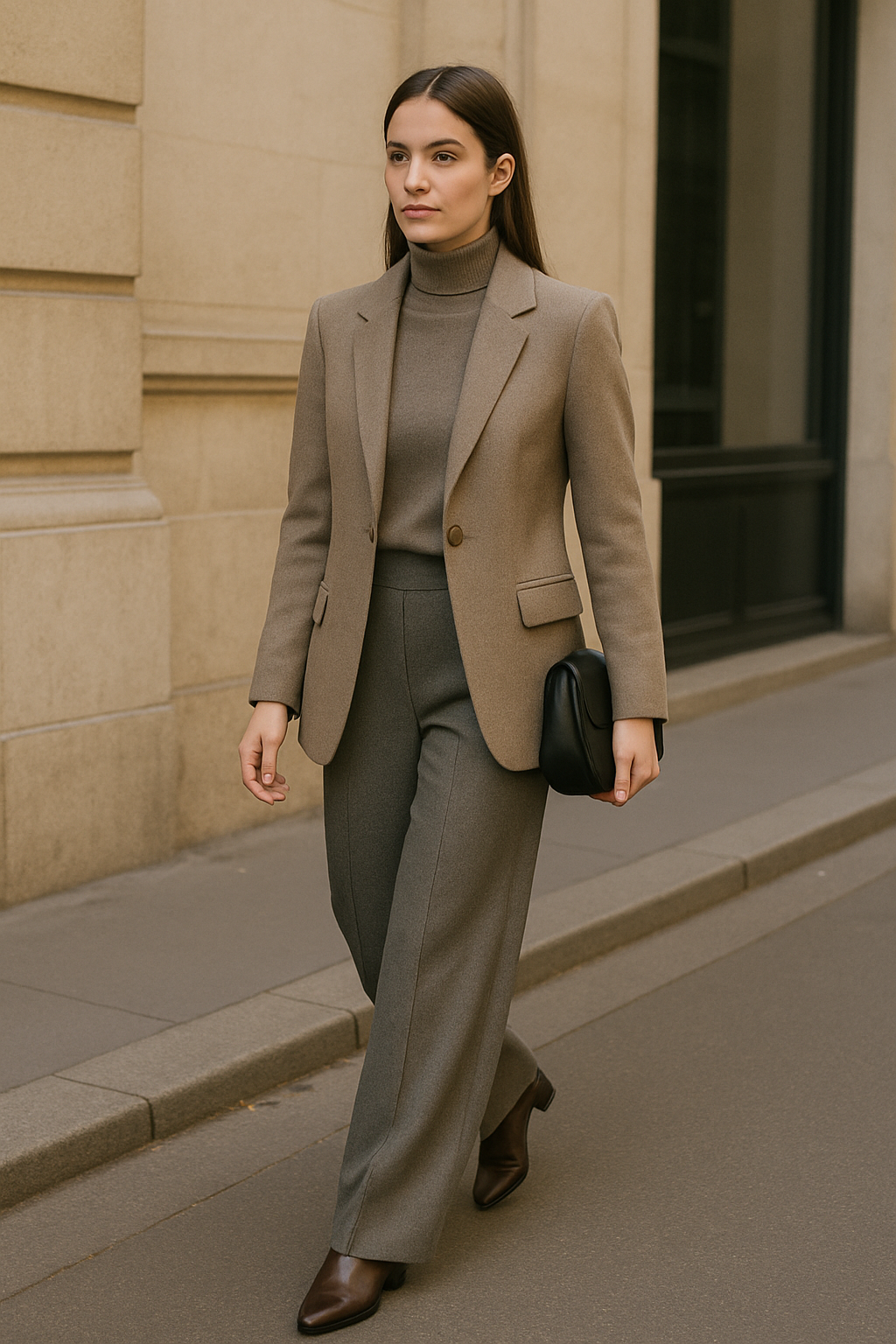 3. Tailored Blazer + Turtleneck + Wide-Leg Trousers