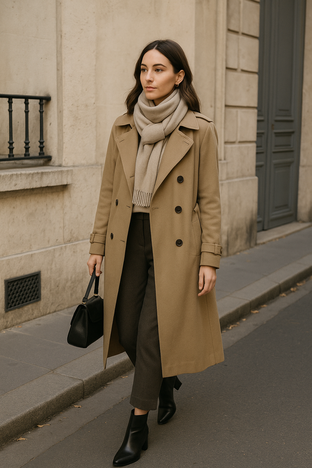 Few pieces are as timeless as a well-cut trench coat in beige or olive. It instantly adds a sense of sophistication to any outfit, no matter how simple the base layers are.