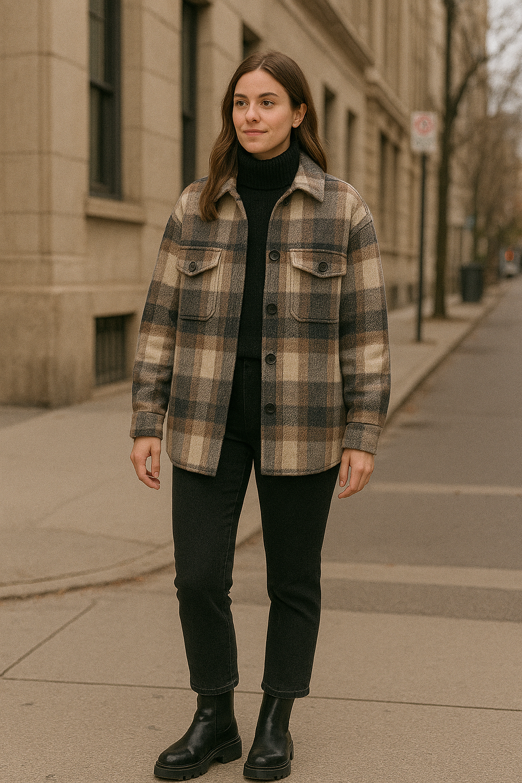 9. Plaid Shacket + Turtleneck + Black Jeans