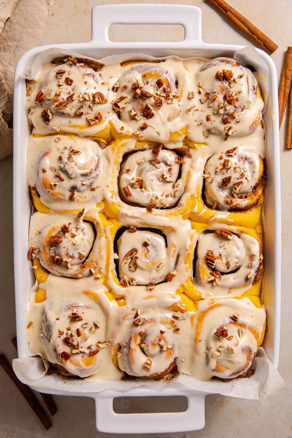 Adding mashed sweet potato to classic cinnamon roll dough creates an incredibly soft texture and subtle sweetness that makes these stand out from ordinary versions. The natural orange color looks beautiful too, making them feel extra festive for fall gatherings.