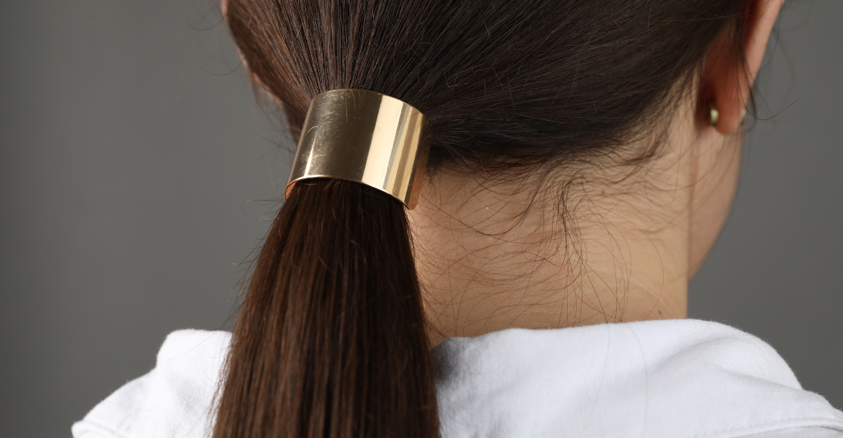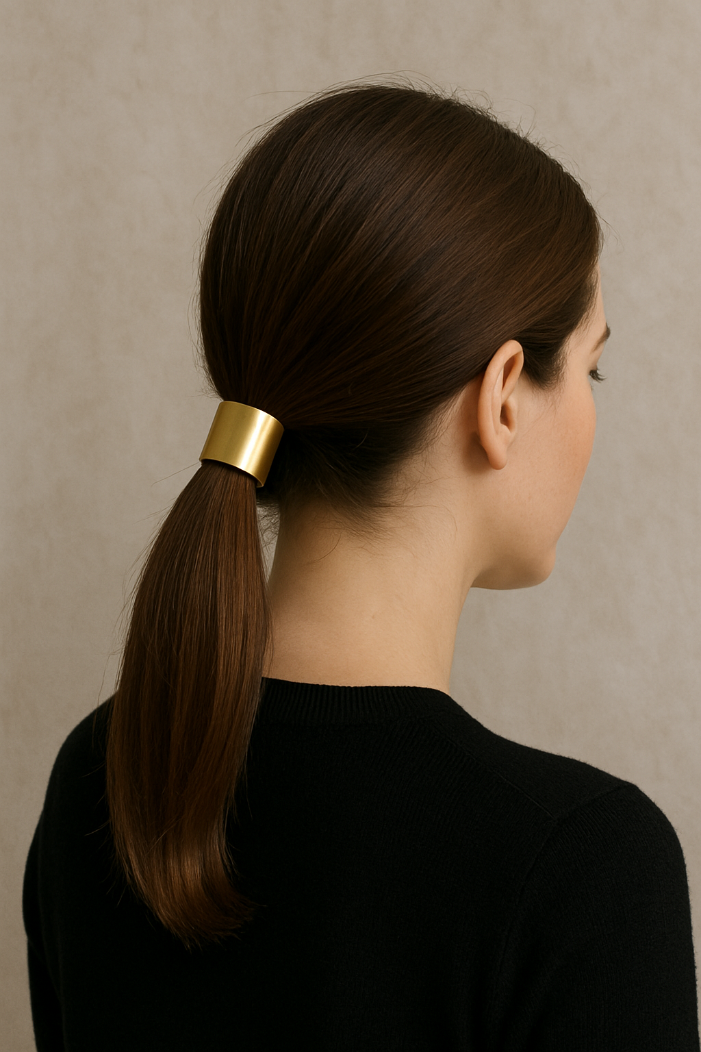 A thin gold cuff positioned at the base of a low ponytail creates an instantly polished look that works for both professional environments and evening events. Unlike elastics that can look casual or utilitarian, metal cuffs feel deliberate and design-forward.