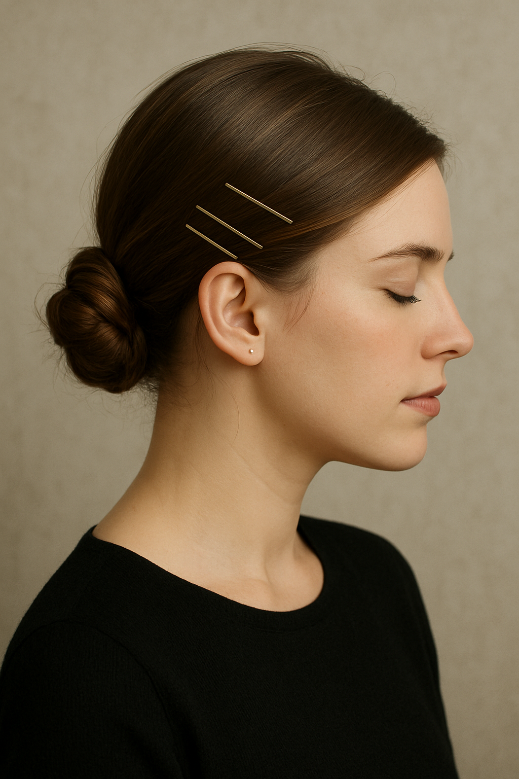 Stack several together along one side of a low bun for a modern asymmetrical look. Alternatively, use just one or two to pin back a single section of hair at your temple. The beauty lies in their simplicity—no rhinestones, no bows, just clean lines that complement rather than compete with your outfit.