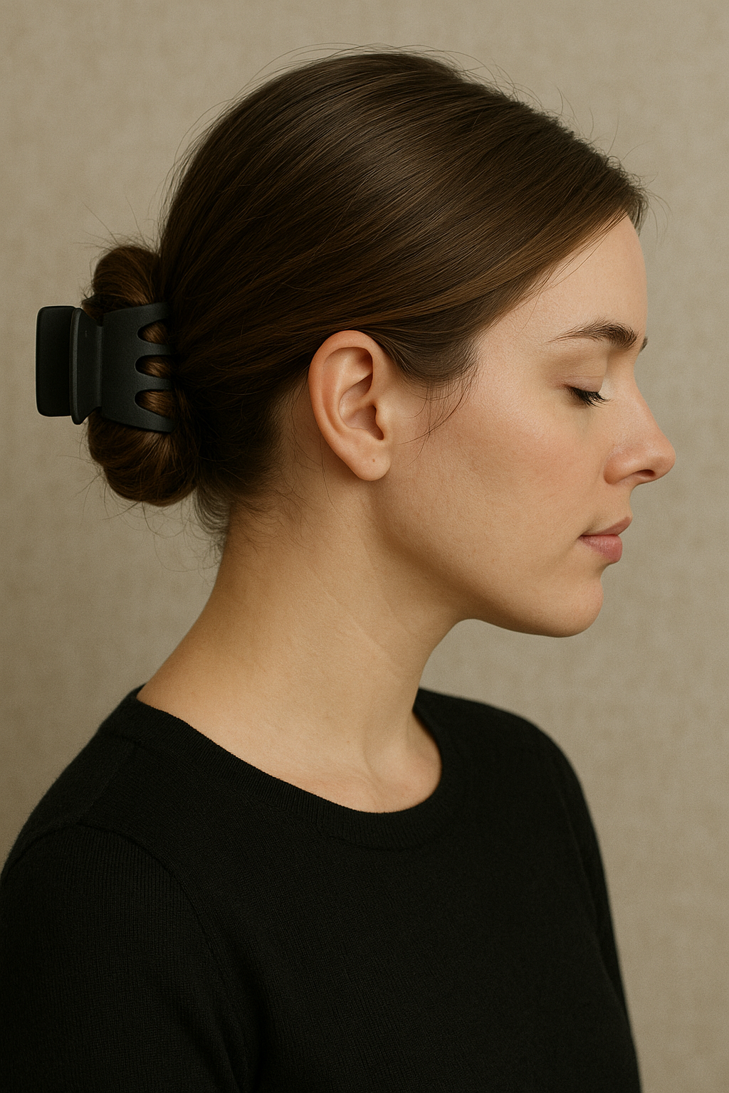 These upgraded clips hold your hair securely without the bulk or childish appearance of their glossy cousins. A medium-sized matte black clip can gather your hair into an effortless updo in seconds, perfect for those mornings when you’re running late but still want to look intentional.