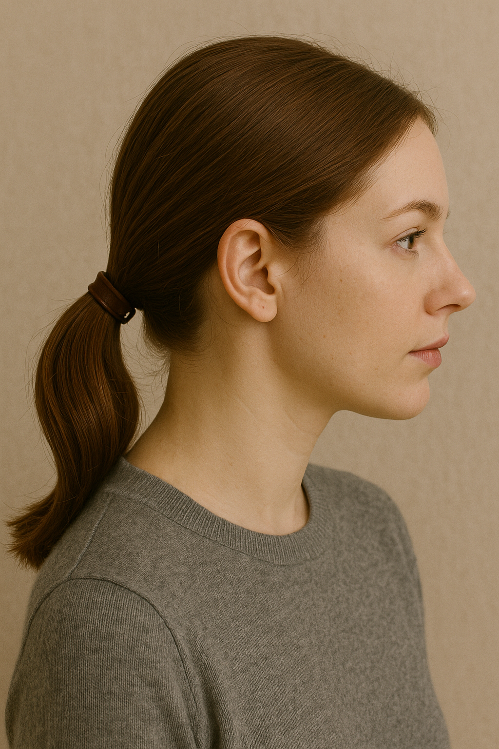 A slim leather cord with a small metal clasp can secure a ponytail with understated style that works equally well with business attire or weekend jeans. The natural material feels substantial and intentional rather than throwaway.