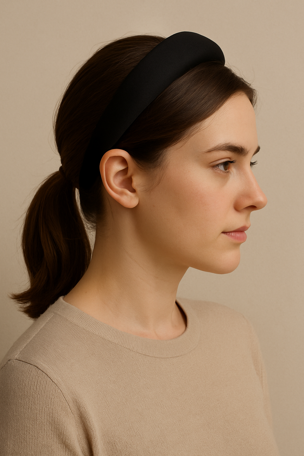 These headbands have enough body to hold their shape without collapsing or sliding around, yet they remain minimal enough to avoid looking costume-like. A padded black headband can anchor sleek, straight hair or add polish to loose waves for an effortlessly chic aesthetic.