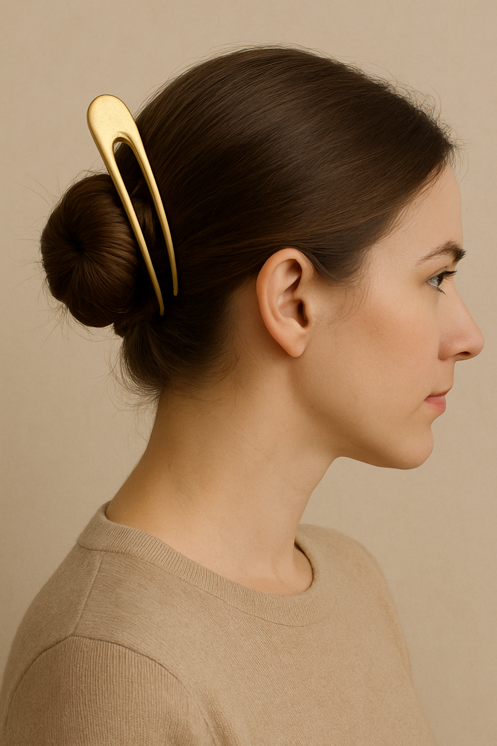 A simple metal hair fork with clean lines can gather your hair into a casual updo in one swift motion, no elastics required. The prongs distribute weight evenly, preventing headaches from tight ponytails.