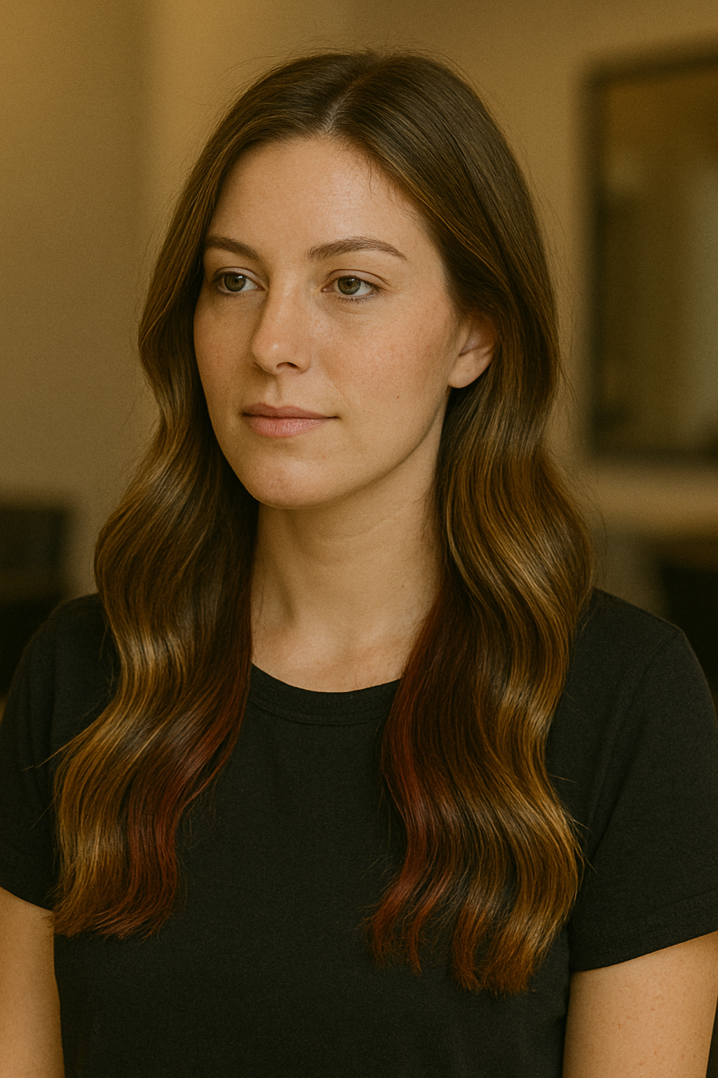 Your colorist blends multiple tones throughout your hair, creating depth that mimics natural growth patterns. The roots are left slightly darker or softly blended, eliminating that harsh line that typically appears after a few weeks.