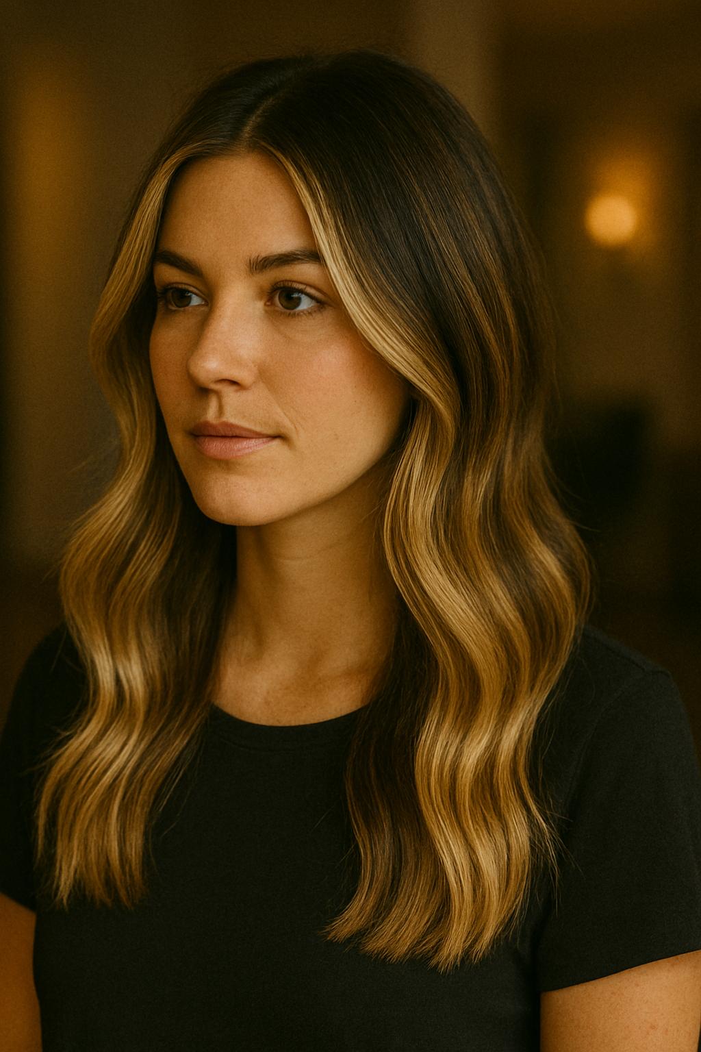 Stylists apply lightener with a freehand motion, focusing on where light would naturally hit. The result? Zero harsh lines and a finish that grows out beautifully for months.