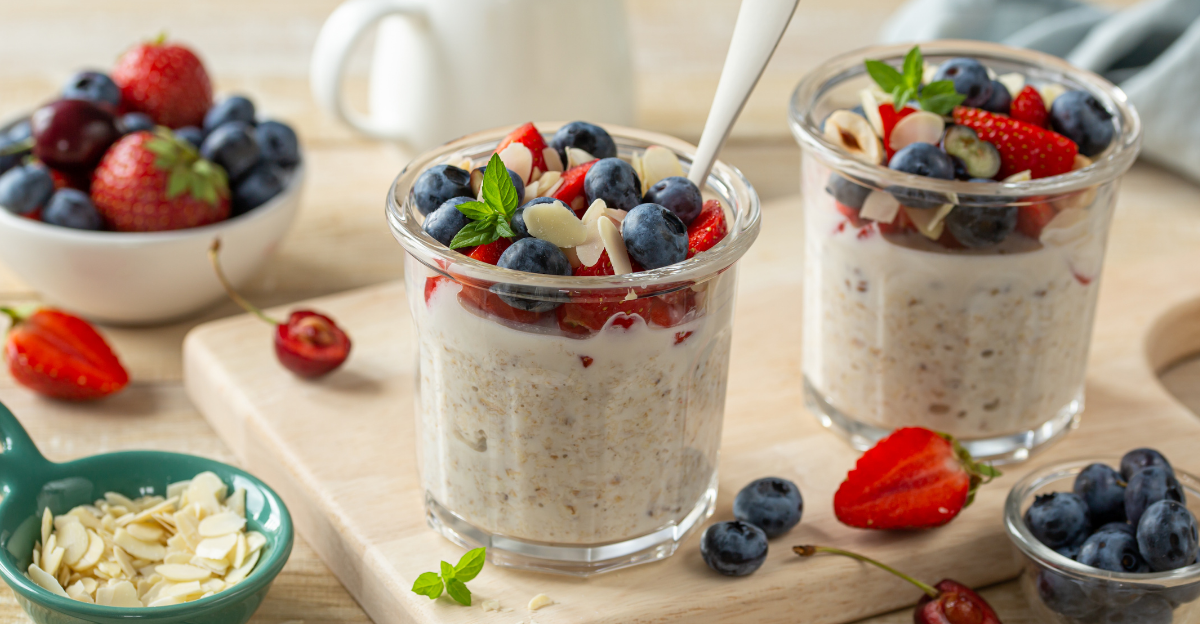 Start your day with a breakfast that works while you sleep! Oats contain beta-glucan, a soluble fiber that forms a gel-like substance in your stomach, keeping hunger at bay for hours.