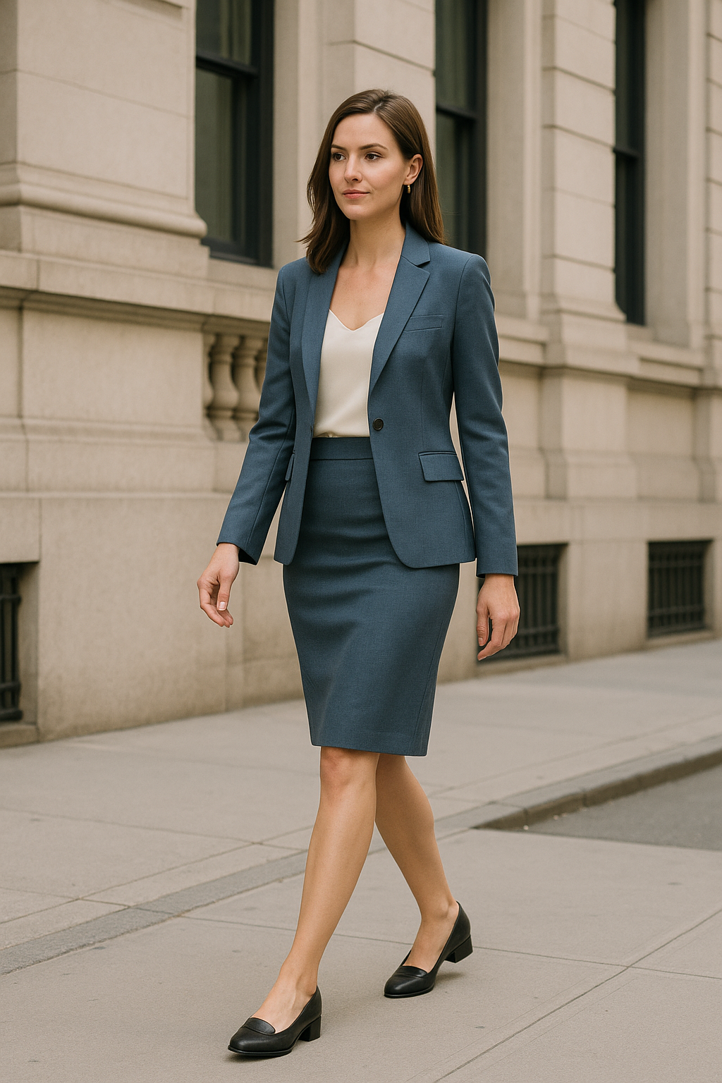 This combination is perfect for important presentations, networking events, or days when you need to look effortlessly put-together. The beauty lies in its simplicity—no fussy details or complicated layering, just clean lines and timeless style that speaks volumes about your professionalism.