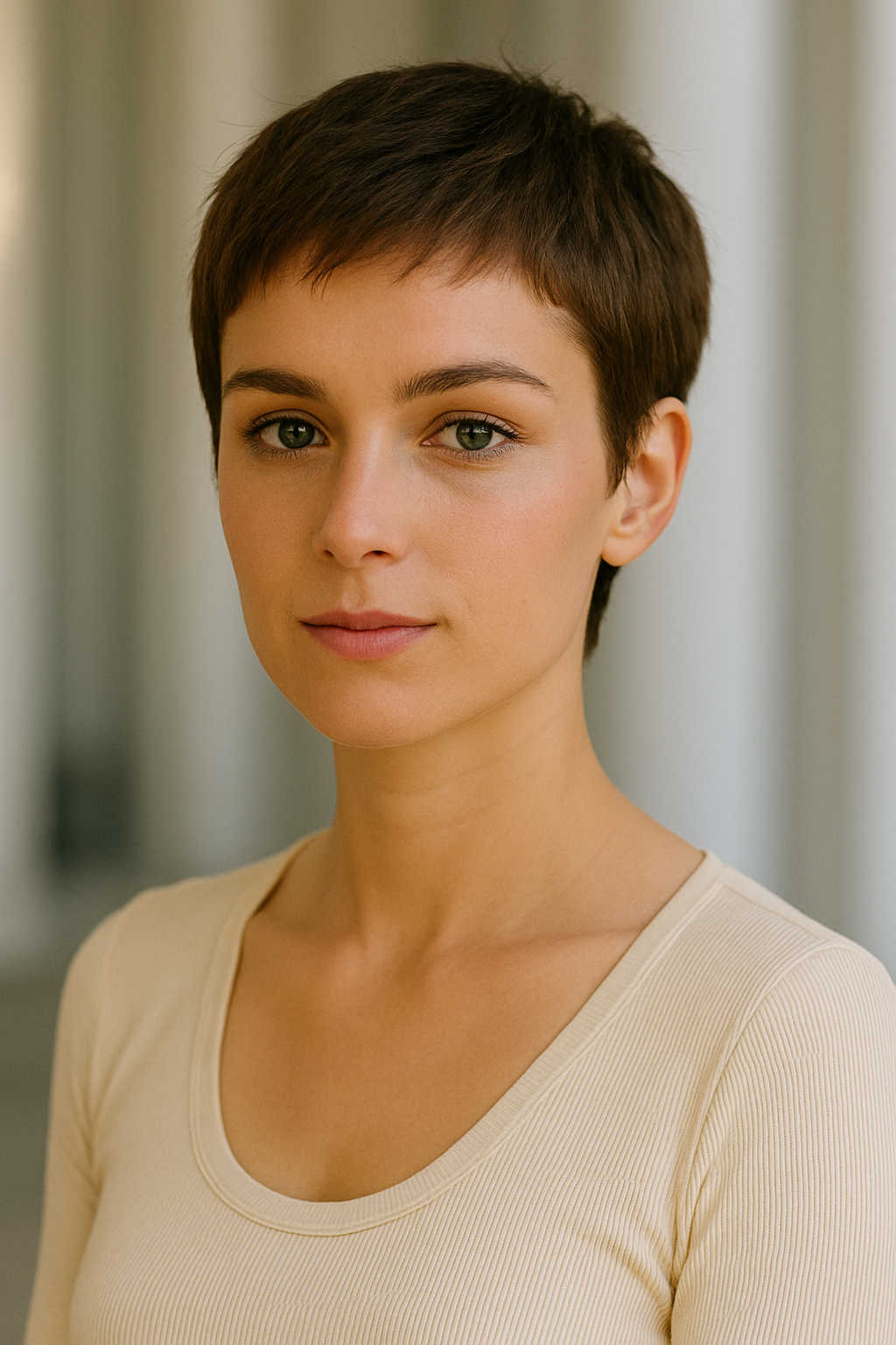 The pixie proves that minimalism doesn’t mean boring, with carefully placed layers creating texture and dimension despite the abbreviated length.