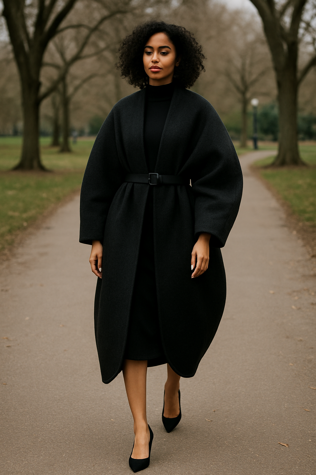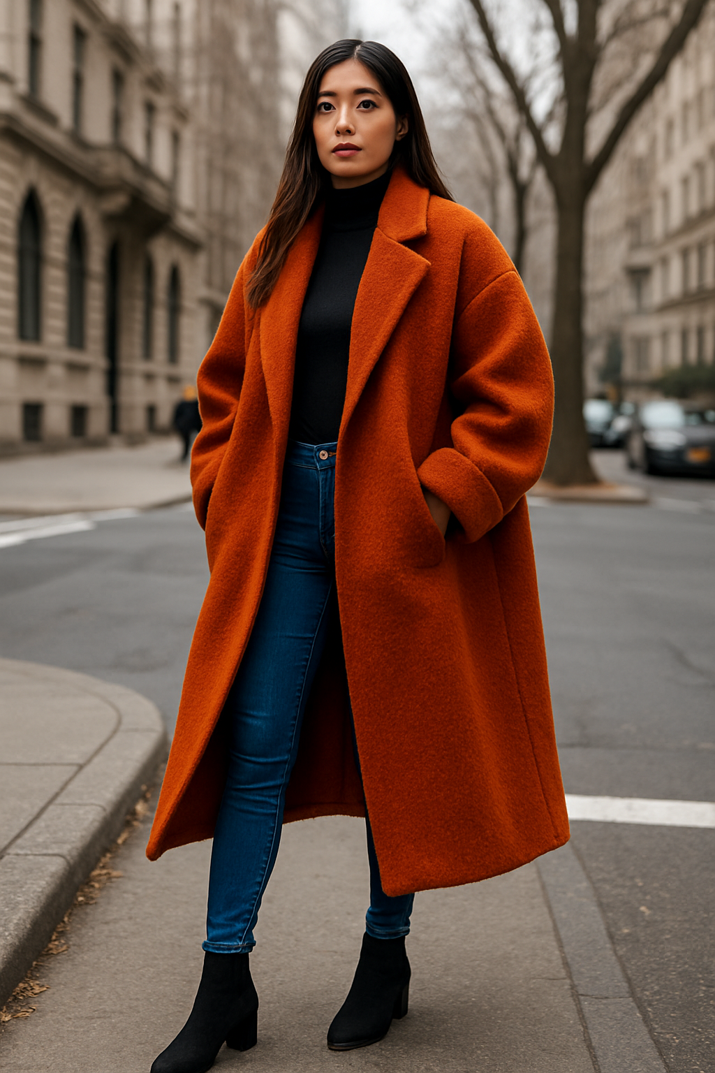 The beauty of this style is that it works for everyone, regardless of body type, because the focus stays on the coat itself rather than what’s underneath.