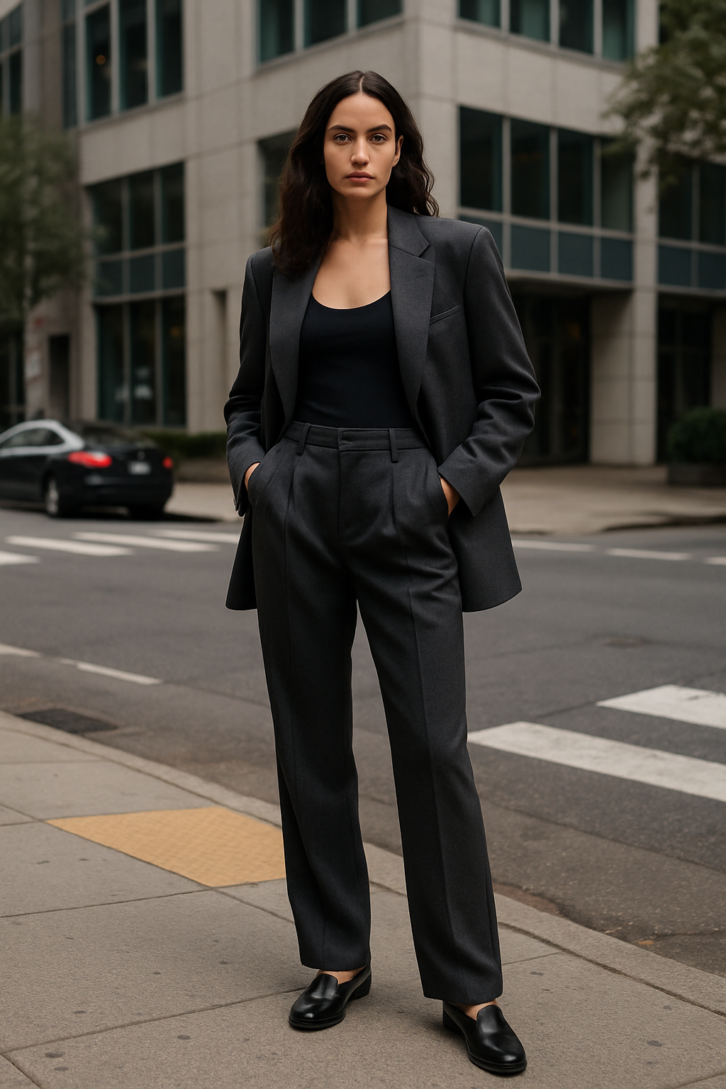 This look works beautifully for gallery openings, creative workplaces, or upscale brunches.