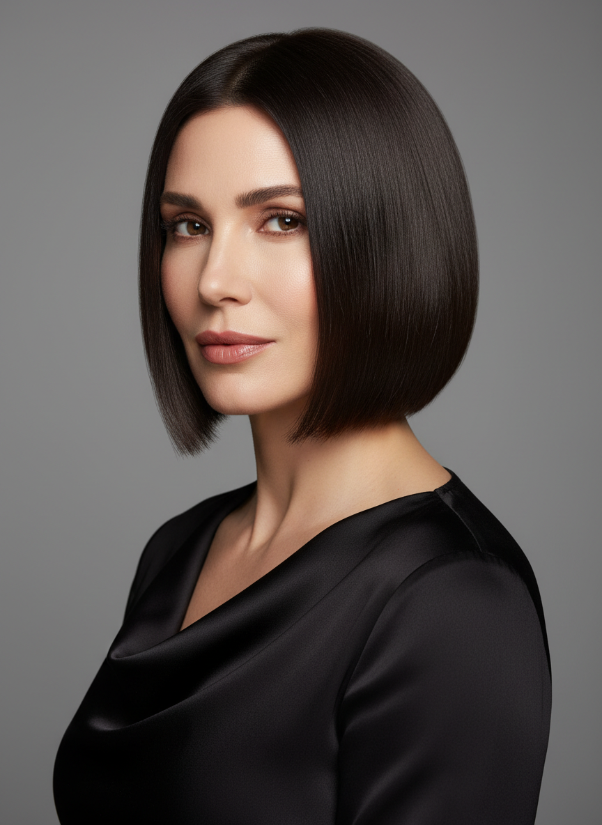 Sharp, glossy, and undeniably chic — the straight bob means business.