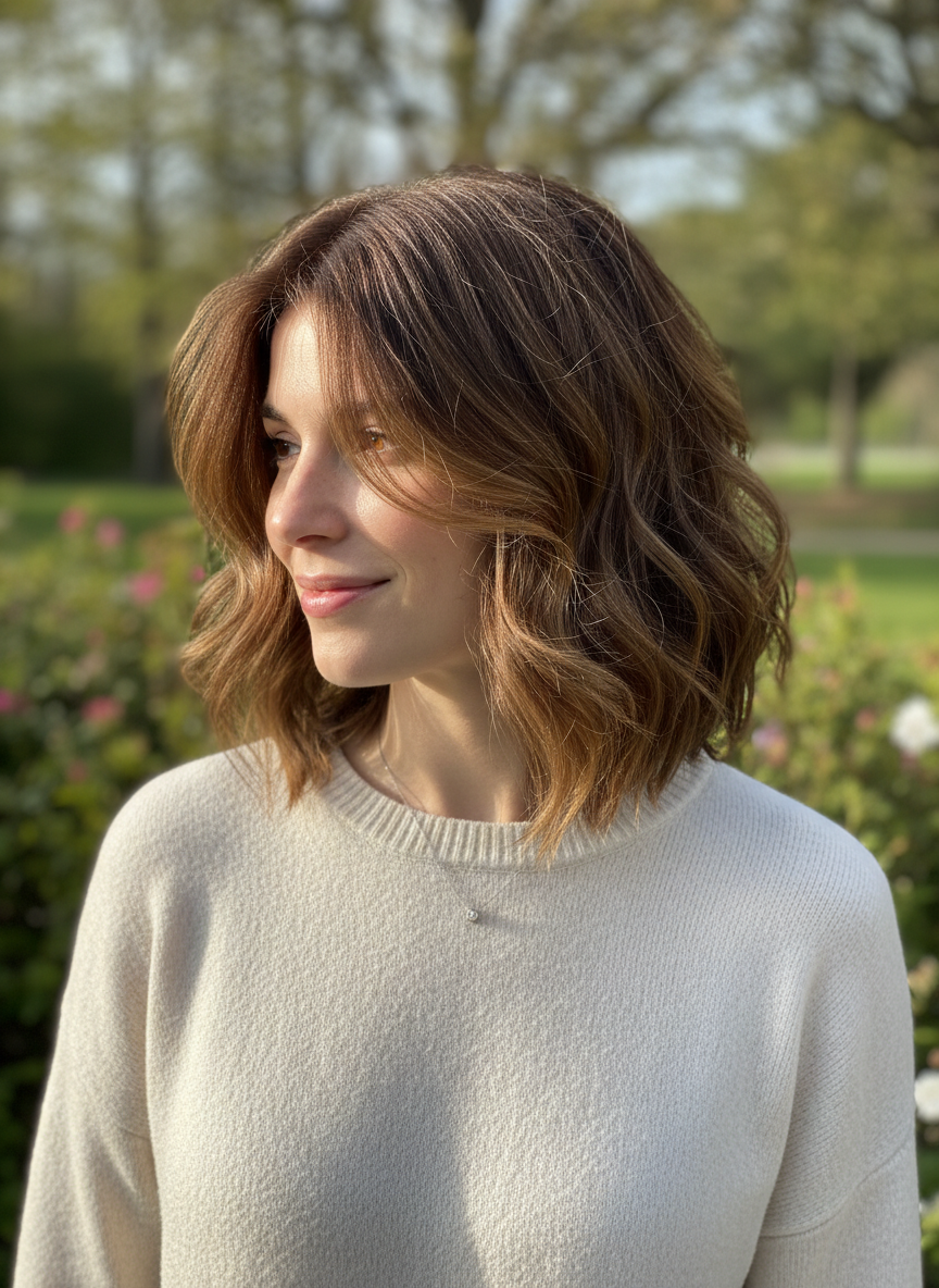 Shoulder-length waves sit in a sweet spot that flatters almost every face shape and age group.