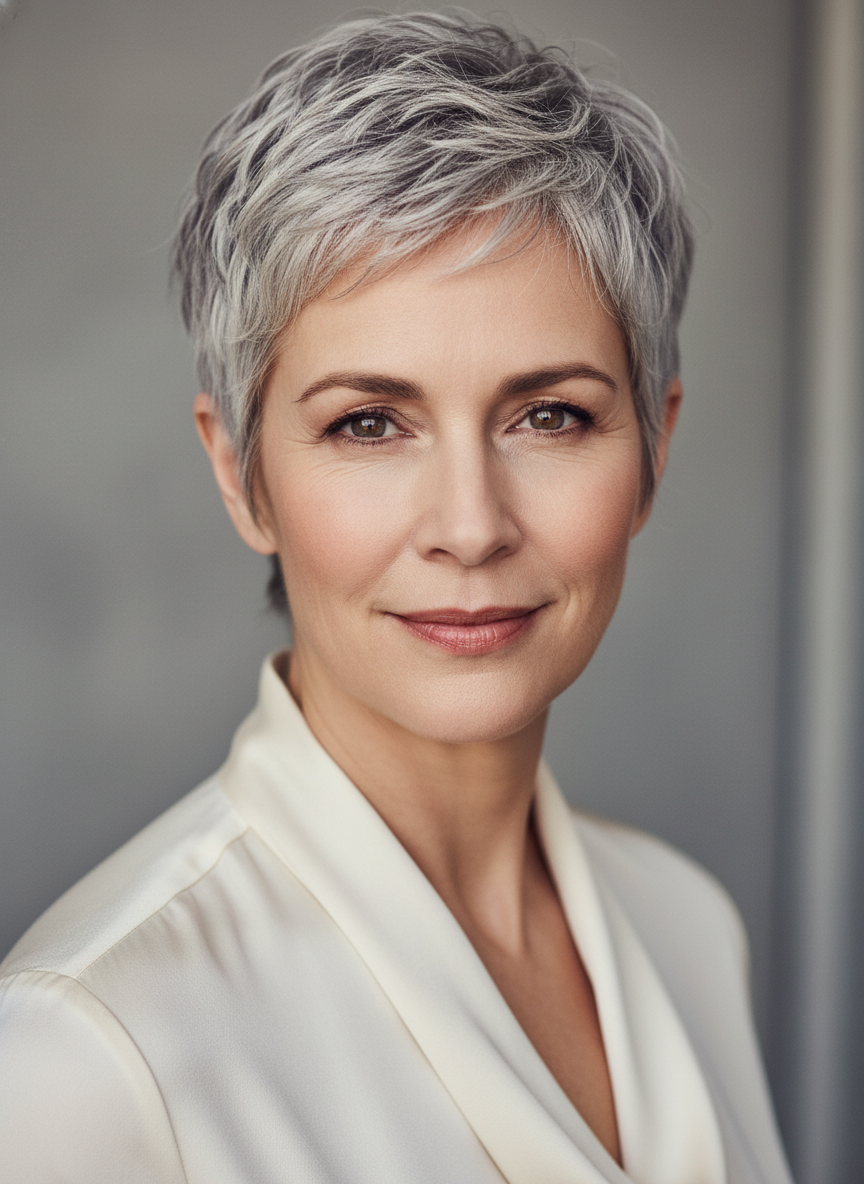 A pixie can be styled in multiple ways — slicked back for drama, tousled for casual cool, or with a side sweep for a softer, romantic feel.
