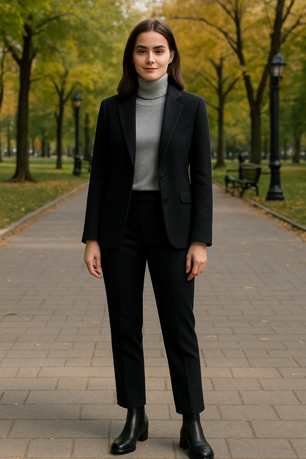 This outfit transitions seamlessly from morning commute to evening client dinners.