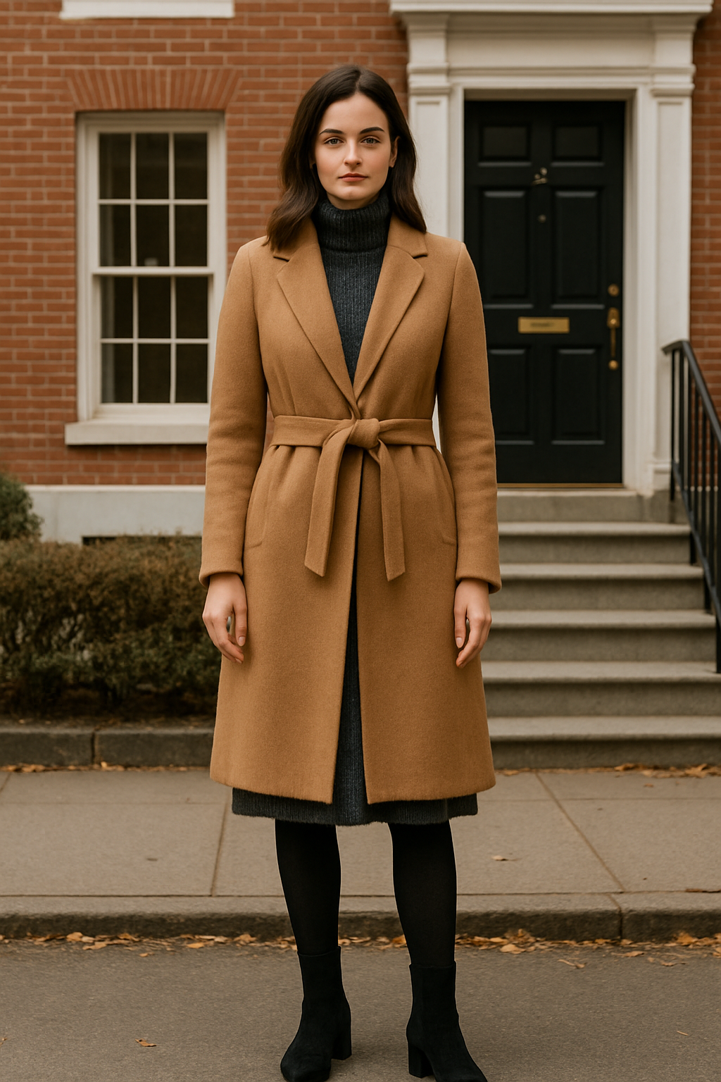 Cinching a wool coat at the waist with a belt creates shape and prevents looking swallowed by layers.