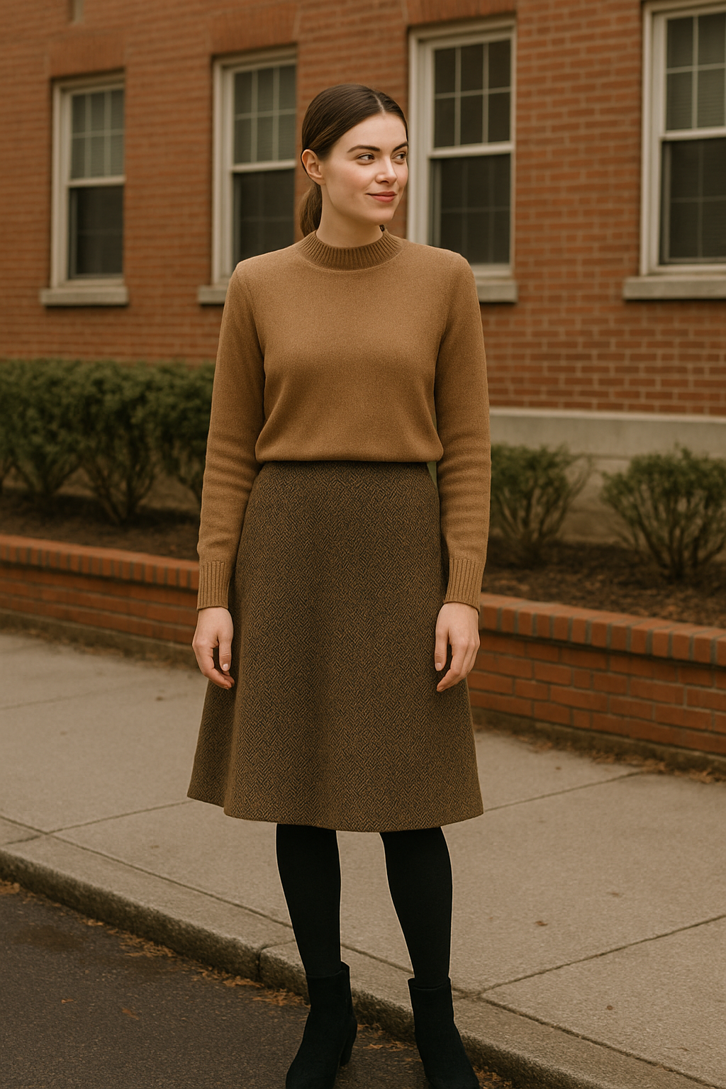 Thermal tights underneath provide invisible warmth that makes skirts completely practical for freezing temperatures.