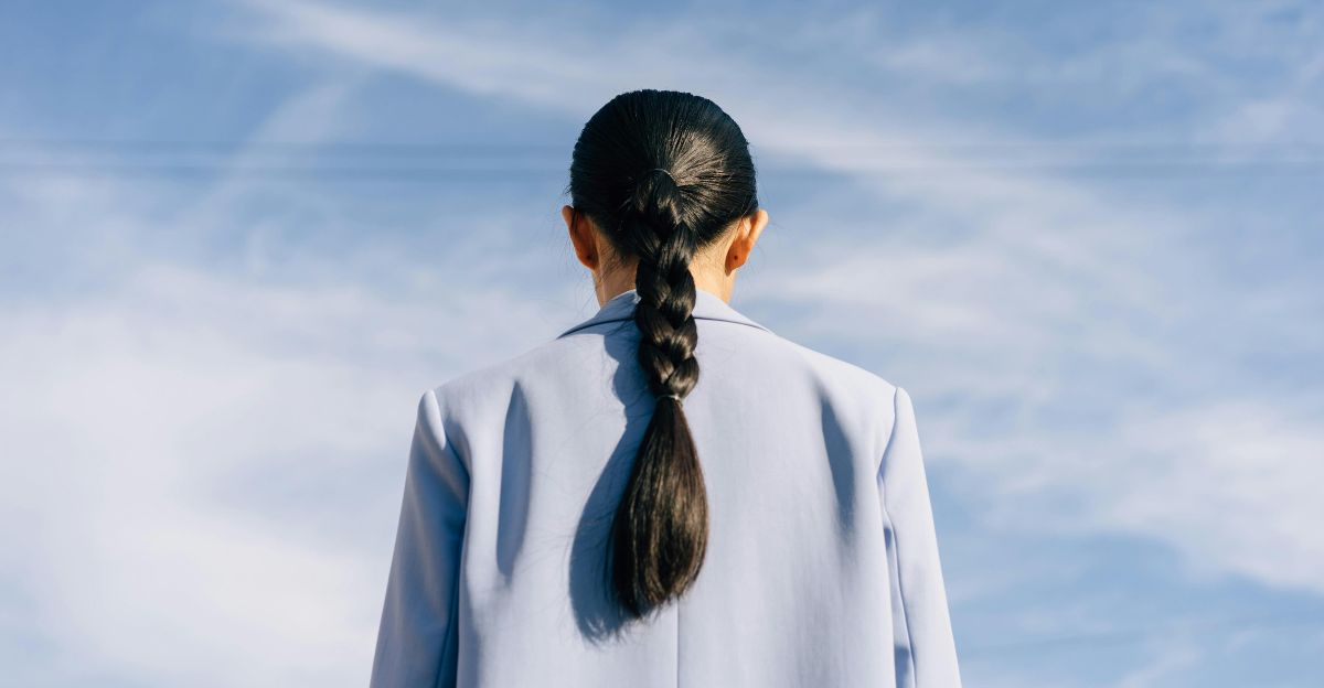 This half-up style adds lift exactly where oily roots tend to show, drawing the eye upward and giving your hair a fresh, intentional look with a trendy, effortless vibe.